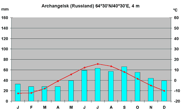 0°C. Im Winter ist es kalt und trocken (Ostsibirien bis -50°C), im Sommer können